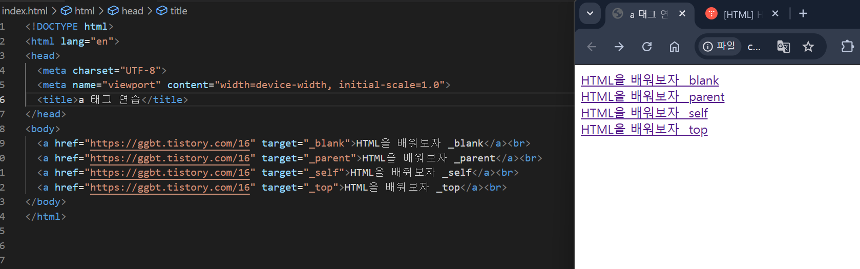 <a href="https://ggbt.tistory.com/16" target="_blank">HTML을 배워보자 _blank</a><br>